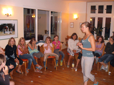 Aufenthalt in Bergen Aufenthalt für Kinder und Jugendliche Aufenthalt für Erwachsene und Familien Aufenthalt als Betreuer Aufenthalt für Kinder und Jugendliche Willkommen sind alleinreisende Kinder und Jugendliche ab 8 Jahren. Der Urlaub umfasst die Unterbringung in der Villa in Mehrbettzimmer mit eigenem Bad für vier bis acht Kinder, Frühstück, Mittagessen, Abendessen, ein Pflegepferd, um welches Ihr Euch die Woche über kümmert, sowie natürlich das Reiten (2 Stunden pro Tag - eine vormittags, eine nachmittags -, sowohl Ausritte als auch Dressurstunden). Der Reitstall liegt direkt neben der Villa. Der Tag dreht sich natürlich rund um die Pferde, die im Sommer nachts auf der Weide stehen. Sie werden nach dem Frühstück von der Weide zum Stall geritten und dort geputzt und gesattelt. Dann beginnt das Reitprogramm. Ihr seid eingeteilt in verschiedene Reitgruppen, so dass Anfänger in Ruhe alle Grundbegriffe lernen können und Reiterfahrene qualifiziert weitergebildet werden. Für jeden gibt es das passende Pferd - vom geduldigen Pony, auf dem Ihr ohne Angst reiten lernen könnt, bis hin zu den "Großen", die sowohl in der Dressur als auch beim Springen glänzen. Nach der letzten Reitstunde des Tages werden die Pferde zurück auf ihre Weide gebracht. Abends kann man zusammen kickern, Tischtennis spielen und und und... natürlich könnt Ihr auch einfach zusammen sitzen und quatschen. Der Abend steht Euch zur freien Verfügung. Ein/e Betreuer/in steht Euch den kompletten Tag als Ansprechpartner/in zur Verfügung. Somit ist ganztägige Betreuung garantiert. Um 21.30 Uhr ist es Zeit, um sich auf die Nacht vorzubereiten und ab 22 Uhr herrscht Nachtruhe. Infos zu Kontakt, Preisen, Terminen und Dingen, die Ihr dabeihaben solltet, findet Ihr auf der Homepage des Reit- und Ferienhof Schulz unter www.ferienreitschule.de Aufenthalt für Erwachsene und Familien Die Unterbringung für Erwachsene und Familien findet wahlweise in den Ferienbungalows im Ort oder in der Villa in Gästezimmern statt. Die Zimmer sind einfach ausgestattet und verfügen über ein eigenes Bad und WC sowie einen Fernsehapparat. In den Ferienbungalows ist auch Selbstversorgung möglich, aber natürlich kann auch die Vollpension gebucht werden, so dass an den Mahlzeiten in der Villa teilgenommen wird. Ebenso flexibel ist das Reitprogramm. Es kann der Wochenreitkurs mit zwei Reitstunden pro Tag gebucht werden, aber auch individuelle Reitstunden sind in Absprache möglich. Auch hier wird man natürlich je nach Kenntnisstand gefördert. Nichtreiter, die Ihre Kinder oder Partner begleiten, können im Ort verschiedene Angebote nutzen: Tennis, Angeln, Kegeln, Schwimmen... die tolle Landschaft lädt auch zum Wandern oder Radfahren ein. Abends kann man mit den anderen Gästen im Reiterstübchen in der Villa zusammen kommen und den Abend gemütlich ausklingen lassen. Infos zu Preisen aller Unterbringungsmöglichkeiten (auch Gastboxen) und Kontaktadressen sind auf der Homepage des Reit- und Ferienhof Schulz unter www.ferienreitschule.de zu finden. Aufenthalt als Betreuer Thomas Schulz und sein Team sind natürlich immer auf tatkräftige Hilfe der Betreuer/innen angewiesen. Wenn Ihr also den Aufenthalt in Bergen mal aus einer anderen Perspektive kennen lernen wollt, ist das "Arbeiten" in Bergen bestimmt eine super Möglichkeit! In der Regel seid Ihr als Betreuer zu zweit. Idealerweise sollte mindestens einer von Euch schon einige Male auf dem Hof gewesen sein, damit der Tagesablauf und die Aufgaben, die auf einen zukommen, weitestgehend bekannt sind. Reitkenntnisse sind natürlich Voraussetzung, damit Ihr Ausritte anführen und eventuell ab und zu eine Unterrichtsstunde leiten könnt. Ihr solltet mindestens 16 Jahre alt sein, ideal wäre auch hier ein Alter von 18 Jahren und ein Führerschein, um eventuell Gäste von den Bahnhöfen abholen zu können. Neben der Betreuung der Ferienkinder gibt es noch folgende Aufgaben, die sich die Betreuer teilen: - Hilfe in der Küche vor und nach den Mahlzeiten - "Tresendienst", also Ausgabe von Taschengeld an die Ferienkinder, Verkauf von Süßigkeiten und Getränken und Telefondienst, wenn Eltern anrufen, um mit ihren Kindern zu sprechen - Hilfe im Stall (Pferdeversorgung, Beaufsichtigen der Ferienkinder beim Putzen und Satteln usw.) Ihr steht den Ferienkindern und Gästen die Ferienwoche als Ansprechpartner zur Verfügung. Vor allem ist die Arbeit als Betreuer eine tolle Erfahrung und Möglichkeit, den ganzen Tag mit den Ferienkindern und den Pferden zu verbringen und den Ablauf mal aus einer anderen Sicht kennen zu lernen. Alle Betreuer werden natürlich nach ihren Fähigkeiten eingesetzt. Niemand muss etwas machen, was er sich selbst nicht zutraut. Wenn Ihr also interessiert seid, eine Woche als Betreuer in Bergen zu arbeiten, freut sich Thomas immer gerne auf Eure Anfrage! Kontakt: Familie Schulz Feriendamm 29468 Bergen an der Dumme Telefon: 05845 / 232 Fax: 05845 / 1354 E-Mail: Schulz@ferienreitschule.de www.ferienreitschule.de Startseite --> Aufenthalt in Bergen | |